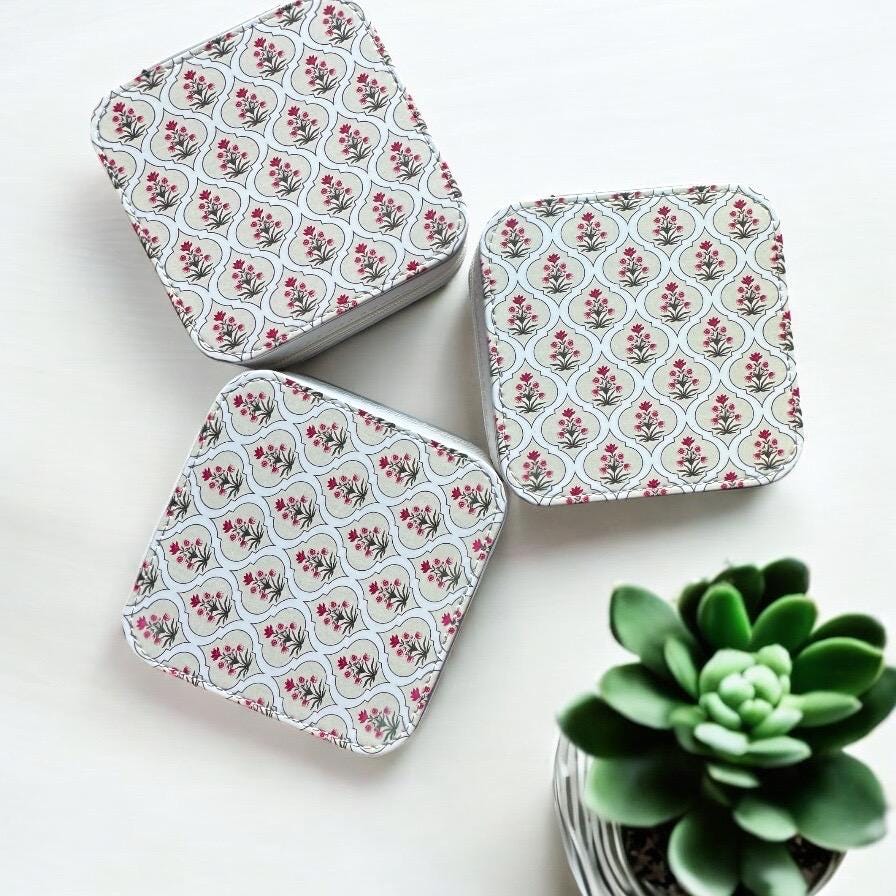4x4 Travel jewlry box with an elegant pastel design. Makes perfect gift for housewarming graduation or for personal use. Read more