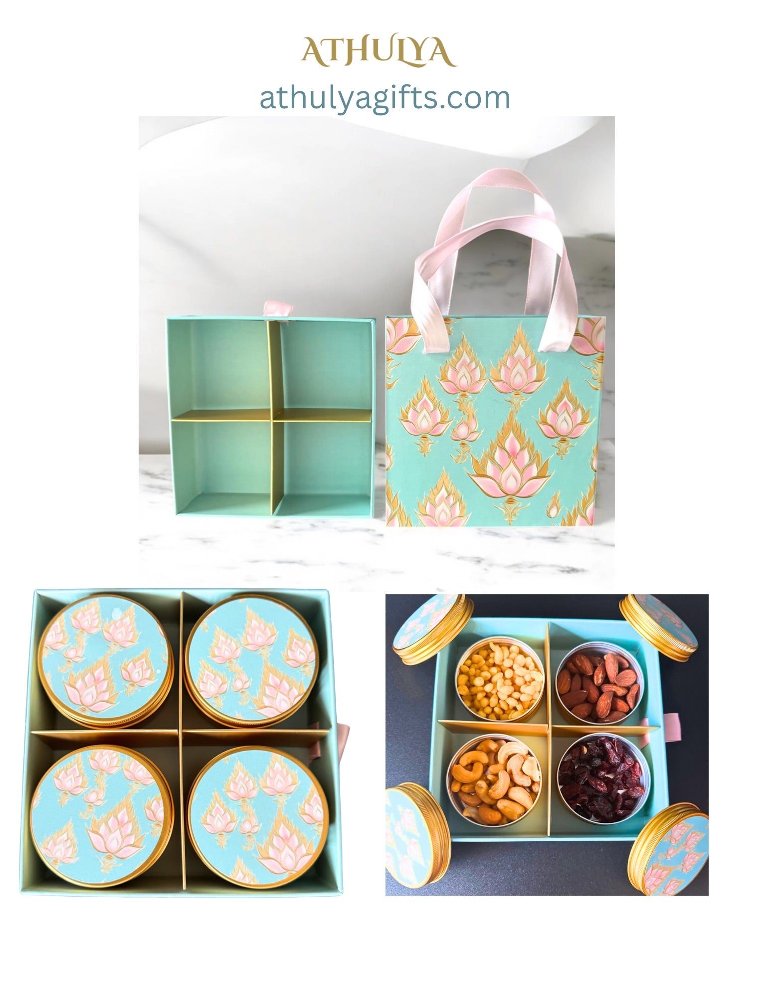 Gift Box witbhandle and 3oz Tin Jars and Customizable Interior -Dry Fruits Not Included. Introducing the innovative Premium Box Bag... Read more
