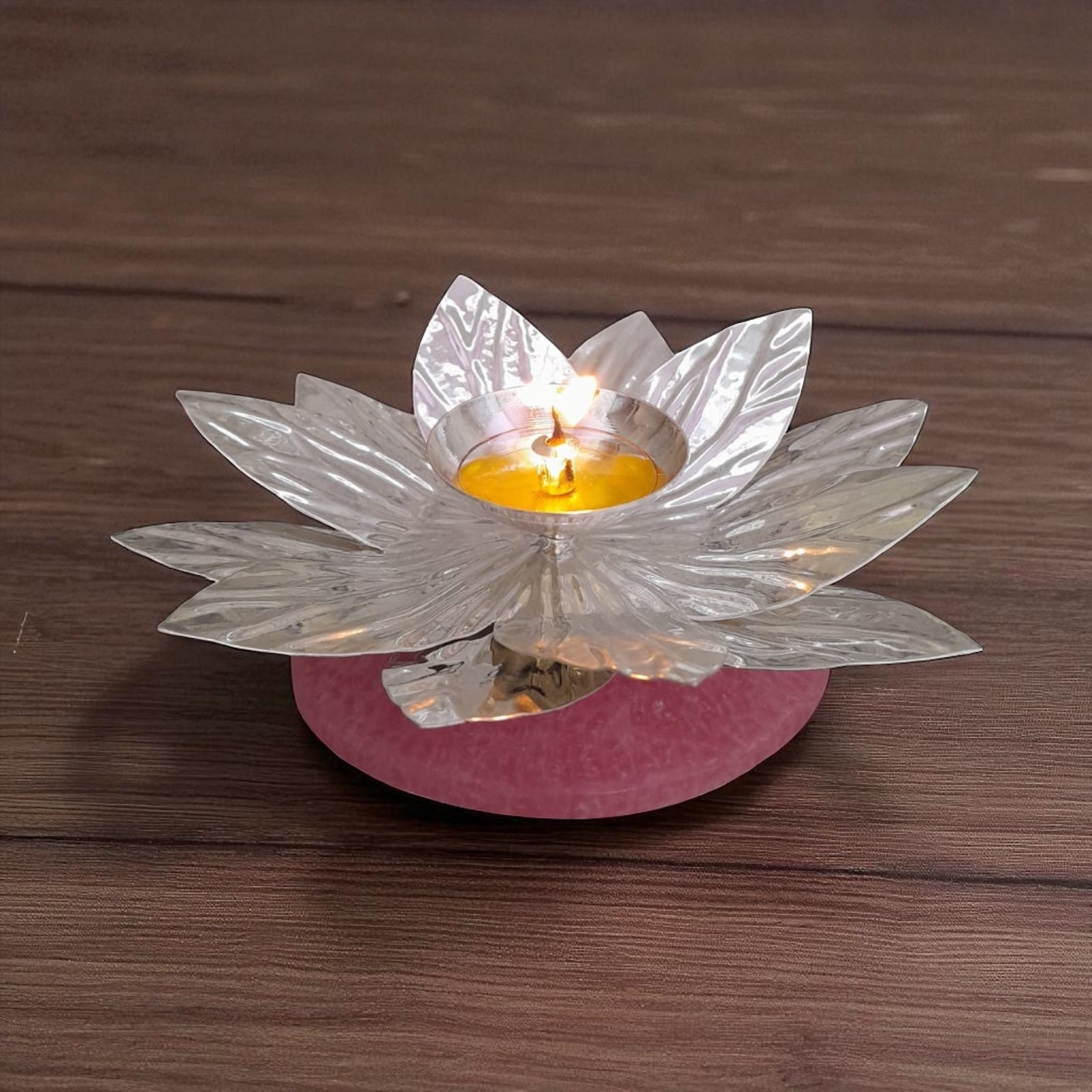 Shiny finish silver plater Diya. 6in wide and 2in height. Delicate handmade object, petals may bend during transit. 🙏🏽 Read more